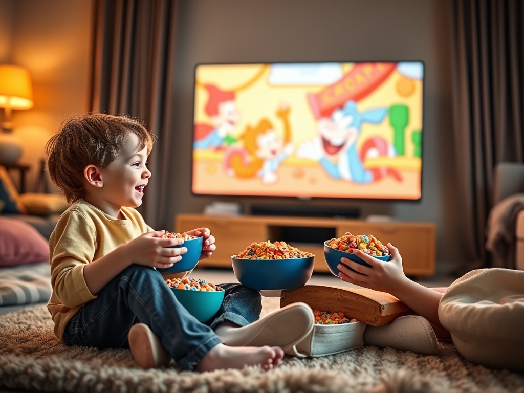 When I was growing up in the 70’s, kids used to love waking up on Saturday mornings to eat a big bowl of Apples Jacks, Fruit Loops or Frosted Flakes and watch Saturday Morning Cartoons. As early as 7 am our eyes were glued, lips slurping as I sat in a trance watching shows like the Super Friends, Captain Caveman and Space Ghost.